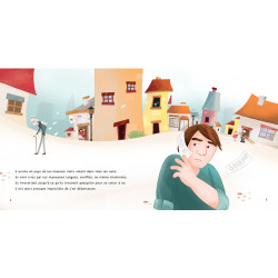 Coupon de tissu illustré des personnages du livre "Le poids des étiquettes".