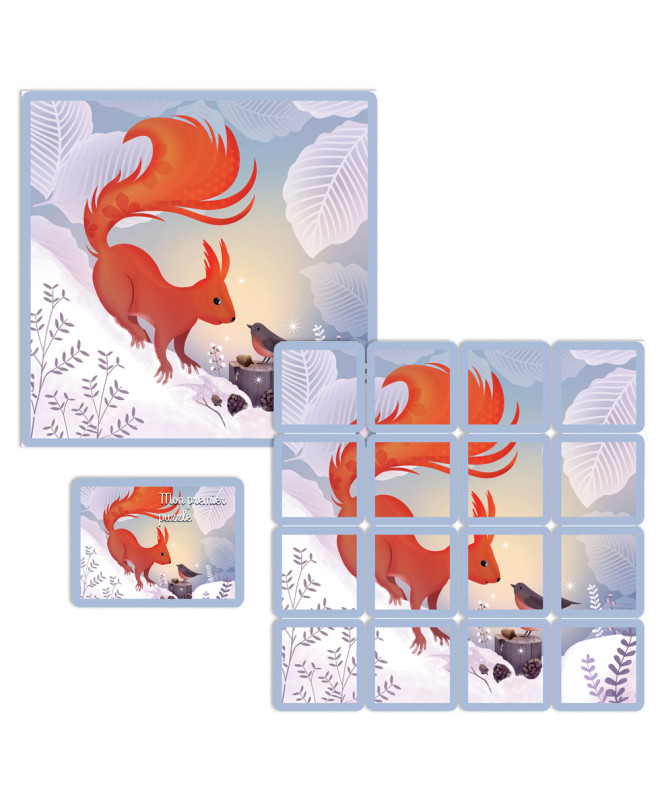 Puzzle à Coudre " Ecureuil et rouge-gorge" 16 pièces - Coupon Coton Bio 185 gr - En stock