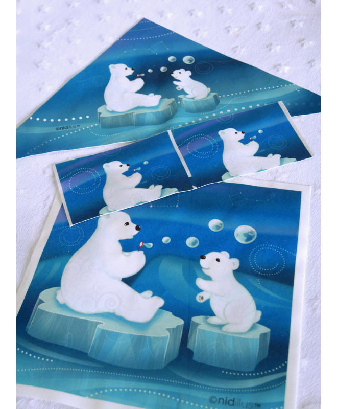 - 1 Coupon triangulaire "Ours blancs" pour coudre une cape de bain pour bébé,