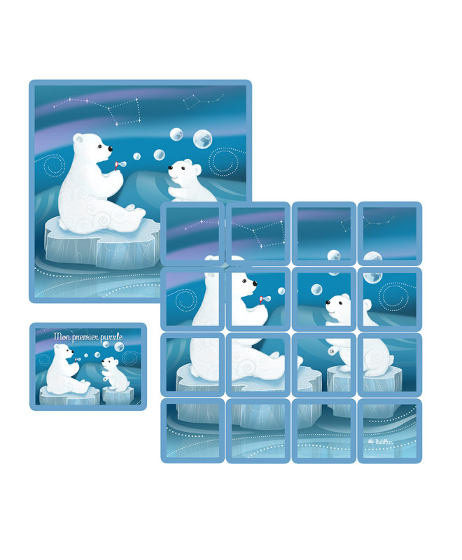 Puzzle à Coudre " Ours polaires" 16 pièces - Coupon Coton Bio 185 gr - En stock