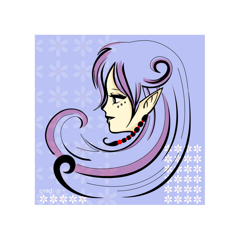 Coupon de tissu illustré représentant un portrait d'une elfe issue d'un monde fantastique.