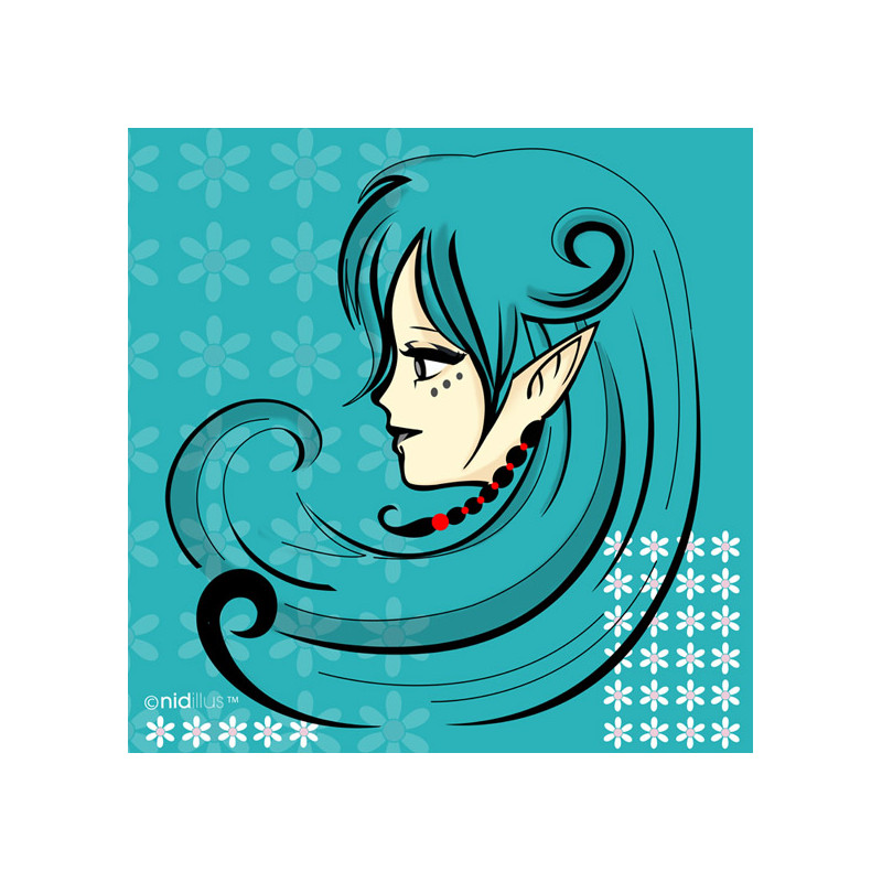 Coupon de tissu illustré représentant un portrait d'une elfe issue d'un monde fantastique.