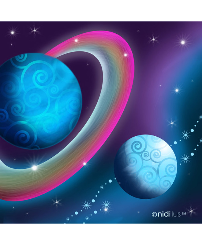 "Planètes magiques-rose et bleu" Coupon Velours souple - En stock