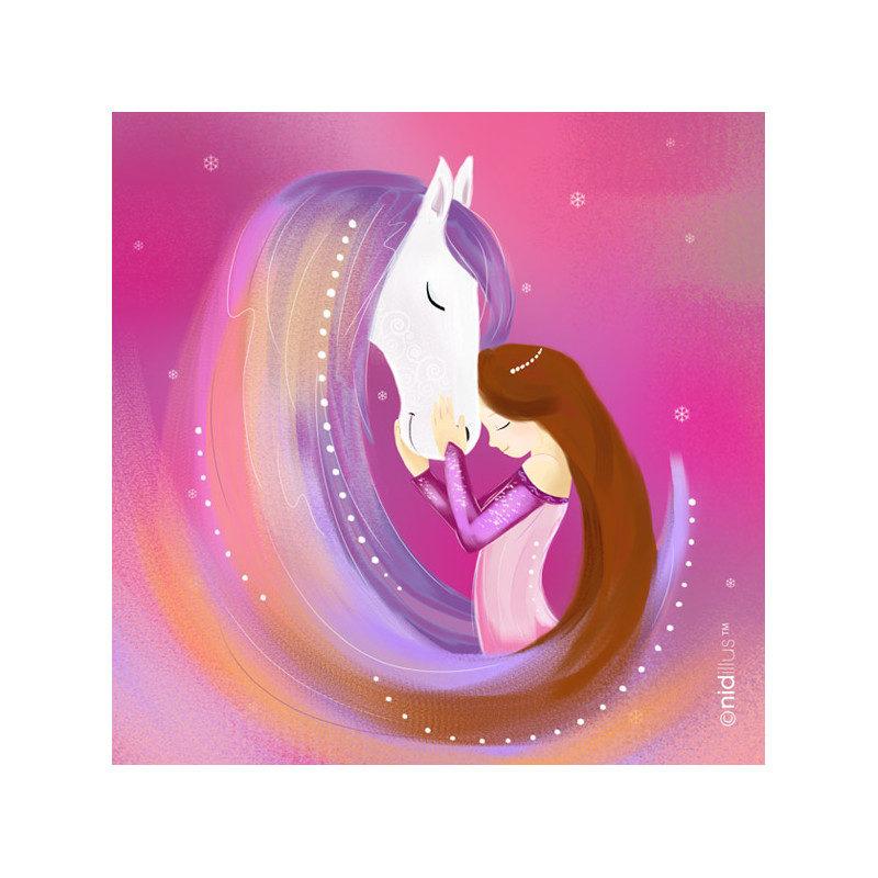 Faites rêver petits et grands avec ce tissu exclusif illustré d’une princesse câlinant son cheval, dessiné par une illustratrice française.
