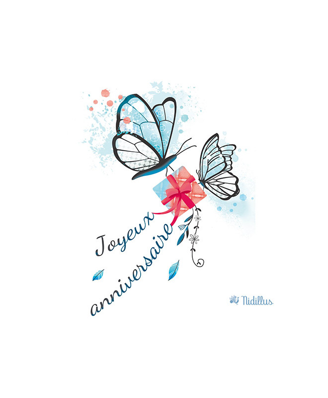 Coupon de tissu "Bon anniversaire, cadeau et papillons".