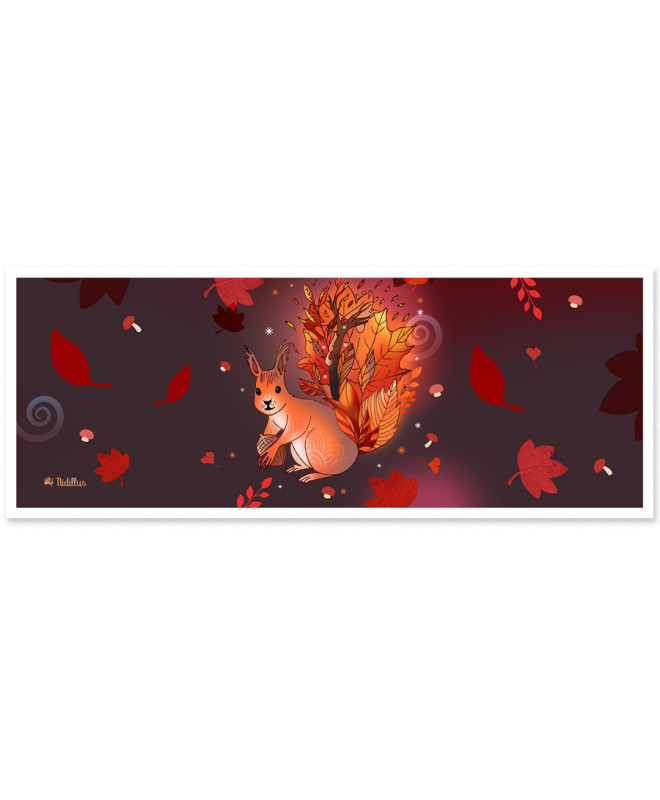 Parfait pour la couture créative, ce motif dessiné en France, possède deux histoires : l'écureuil et sa queue en panache en gros plan + l'écureuil qui grimpe dans l'arbre dessiné dans la queue.