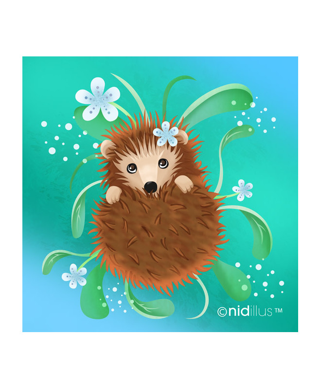 Coupon de tissu illustré représentant un hérisson.
