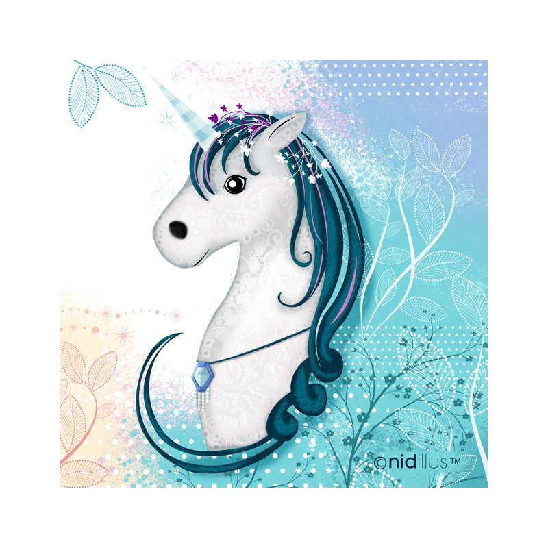 Coupon illustré "Licorne - bleu" pour customiser vos sacs ou autres créations de couture.