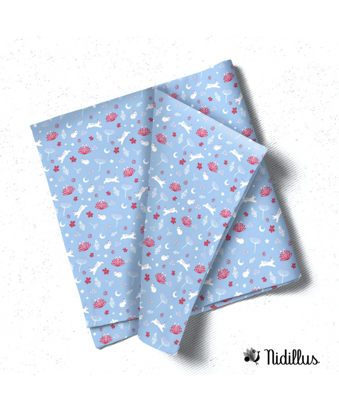 Tissu motifs "Lapin et bohème" bleuC -PRECOMMANDE